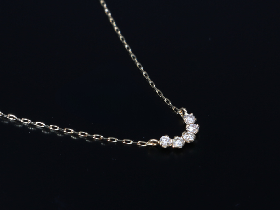 お仕事にもお出かけにも。いつも寄り添ってくれるシンプルなダイヤのネックレス。5つ並んだダイヤモンドが特徴的です。 JEWELIVE サイトオープン記念の今だけの特別価格です!